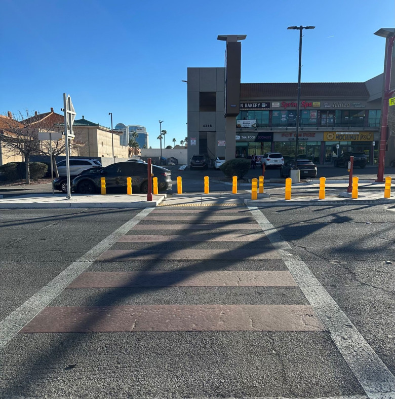 Good news for folks visiting Chinatown which has become more walkable. Along busy Spring Mountain Rd near Arville St, a new crosswalk has appeared with push‑button-activated flashing lights. It’s designed to help folks safely cross the road between Shanghai Plaza and Chinatown Plaza (as well as the adjacent shopping centers).