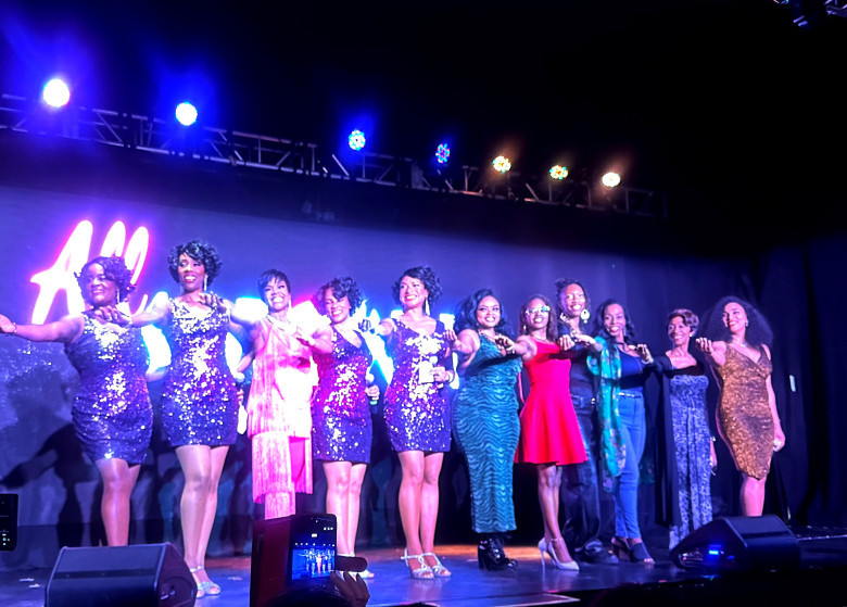 Tonight, it was time to salute the fifth anniversary of the nightly show, which Executive Producer Pete Housley launched during the early/scary days of Covid. Notably, Sherry Gordy—the daughter of legendary Motown founder Berry Gordy—was on hand in the intimate showroom that’s framed with eye-catching red leather booths from the old Tropicana Hotel. Also in the audience were previous cast members who’ve helped make “All Motown” a success through the years.