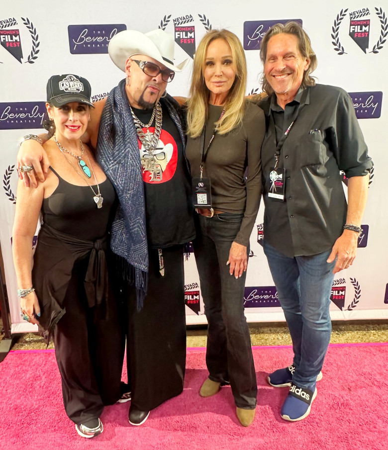Actors and producers Susan Anton and Jeff Lester (far right) were saluted on the carpet by Ava Berman and Carlos Adley, owners of downtown’s Fremont Country Club and Backstage Bar & Billiards. (Image: Vegas 411)